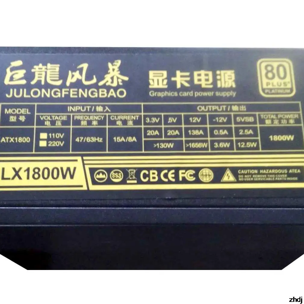 Блок питания для майнинга биткоинов ATX ETH, 1800 Вт, 180 В-260 В, 95% КПД, поддержка 8 карт дисплея, GPU для майнинга биткоинов BTC, Прямая поставка