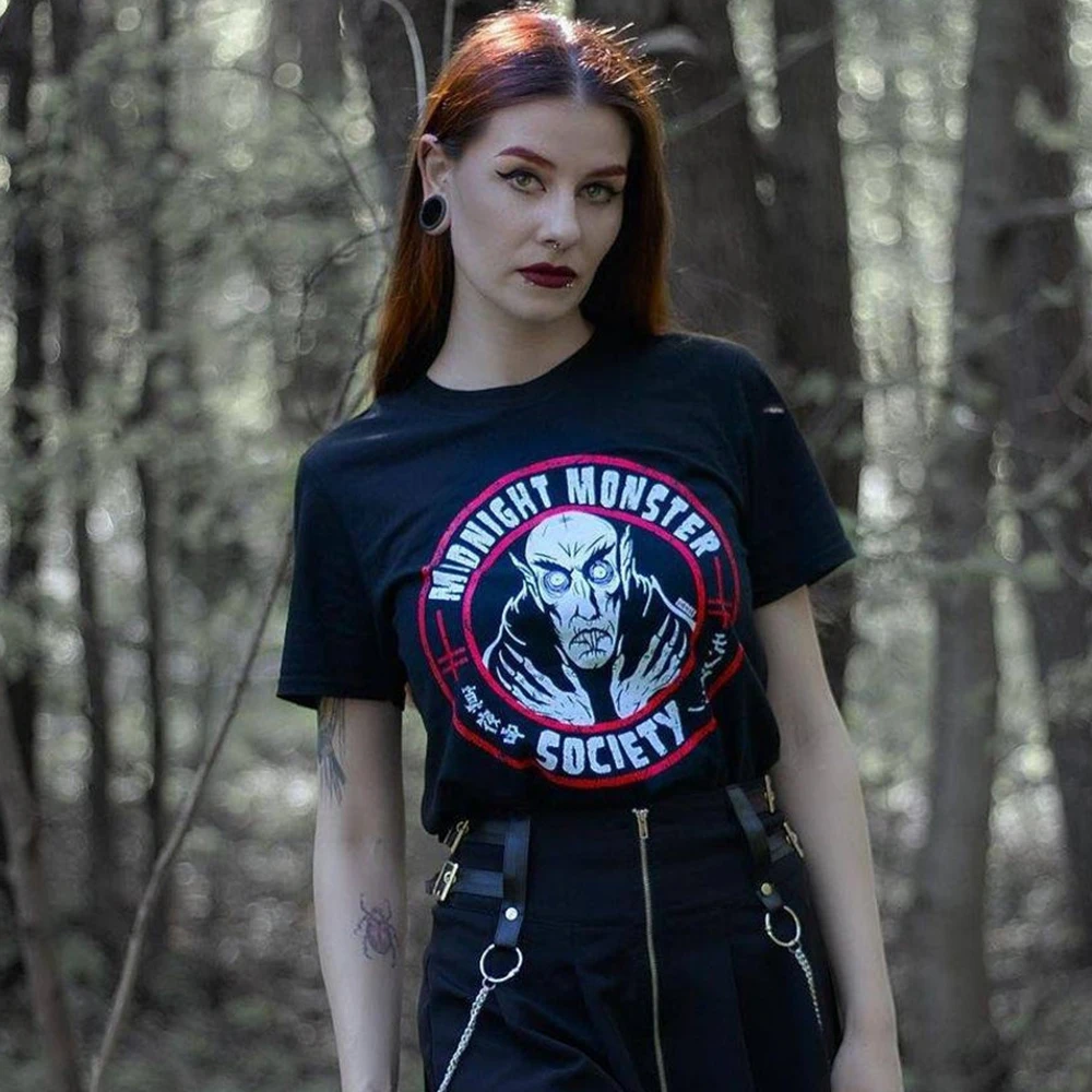 Полуночный Монстр общество забавная футболка унисекс крутая призрак дух Хэллоуин одежда для женщин Бохо гранж Топы Футболки с ведьмами