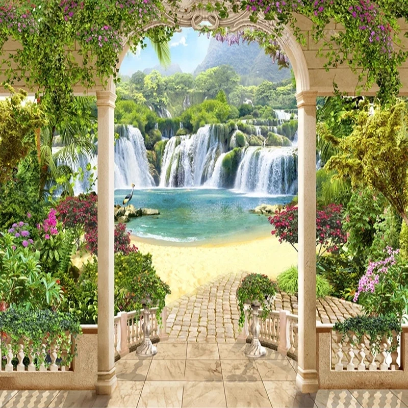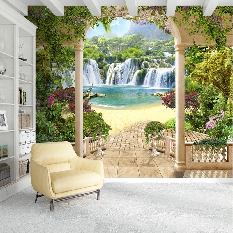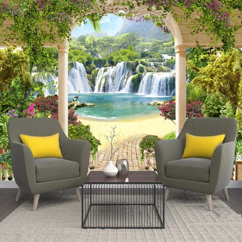Самоклеящиеся обои на заказ, 3D фотообои с изображением сада, балкона, водопада, пейзажа, фона для гостиной, телевизора