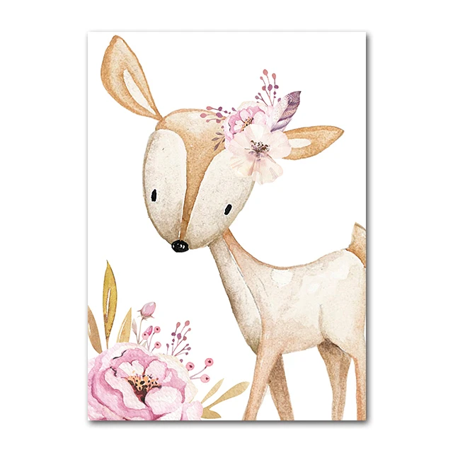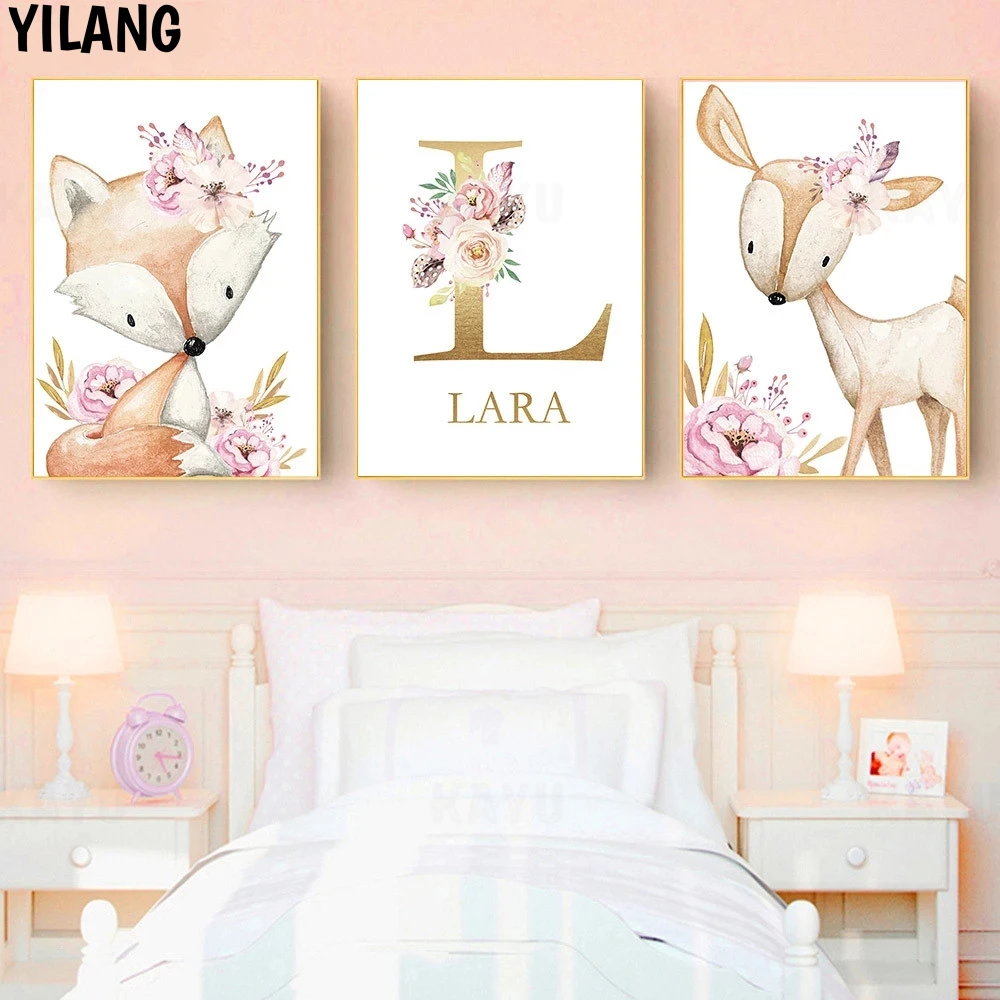 Настенная картина с изображением лесных животных, детской живописи с именем на заказ, Настенная картина с цветочным принтом в скандинавском стиле, украшение для детской комнаты