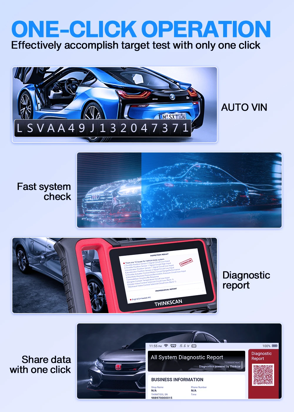 Сканер Thinkscan Plus S4 OBD2 поддерживает диагностический отчет о состоянии здоровья автомобиля
