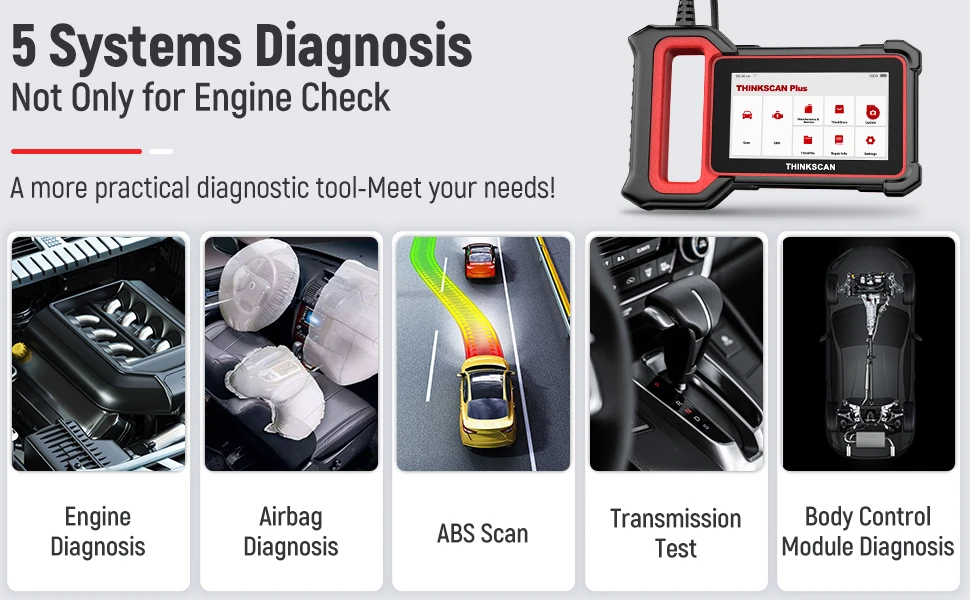 Диагностика системы защиты от торможения: Извлеките коды АБС, чтобы сказать вам, где проблема, тогда вы можете ее исправить.BCM (модуль управления корпусом автомобиля) Диагностика: чтение диагностики неисправностей на теле/раме/системе передачи/системе рулевого управления/тормозной системе/системе вождения.Диагностика системы двигателя: Этот модуль был специально разработан для владельцев автомобилей, чтобы пройти тест на выброс. Он поддерживает все 10 режимов тестирования OBDII-данные в режиме реального времени, тест на датчик O2, данные о кадре Fr-eze и многое другое; Прочитайте и очистите коды ошибок двигателя, узнайте точную проблему, отремонтируйте его и выключите светильник двигателя MIL.Диагностика системы передачи: AT-это набор передач, используемых для координации скорости двигателя и фактической скорости колеса, который используется для обеспечения полной производительности двигателя. Сканер ThinkScan Plus S4 obd2 может считывать/очищать коды и просматривать данные в реальном времени, получая информацию об ошибке по адресу.Диагностика системы SRS: система безопасности, состоит из датчиков удара, модуля управления и сами подушки безопасности. Это диагностическое устройство может обнаруживать Каждый электронный параметр, чтобы проверить его состояние здоровья.
