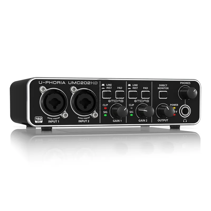 UMC202HD обеспечивает частоту дискретизации до 192 кГц, и 2-х канальный усилитель микрофона может помочь в голос и музыкальный инструмент запись более высокой производительностью, это будет хороший выбор для аудио профессиональных пользователей.