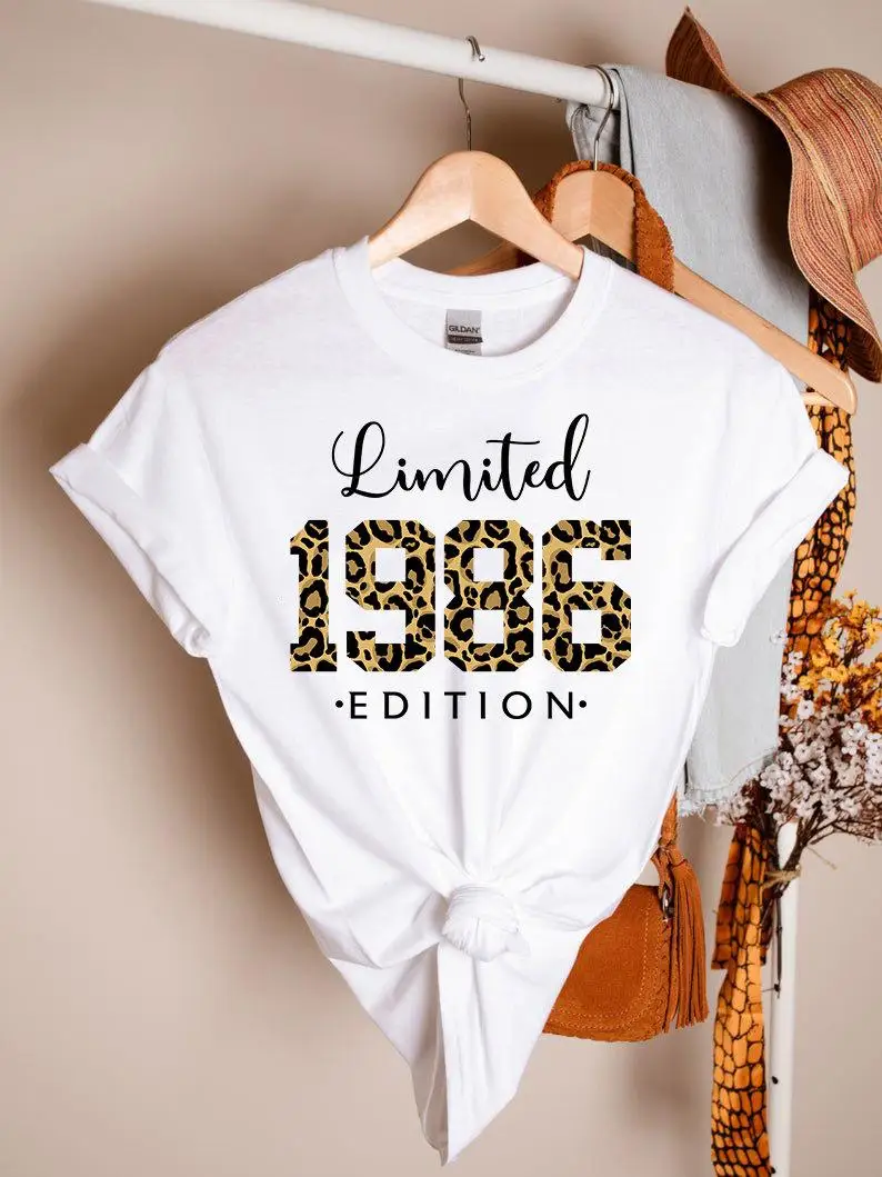 Ограниченная серия 1986 рубашка 35th подарок на день рождения Футболка для женщин размера плюс 100% хлопок женская одежда Модная хлопковая футболка с круглым вырезом для маленьких девочек, футболки