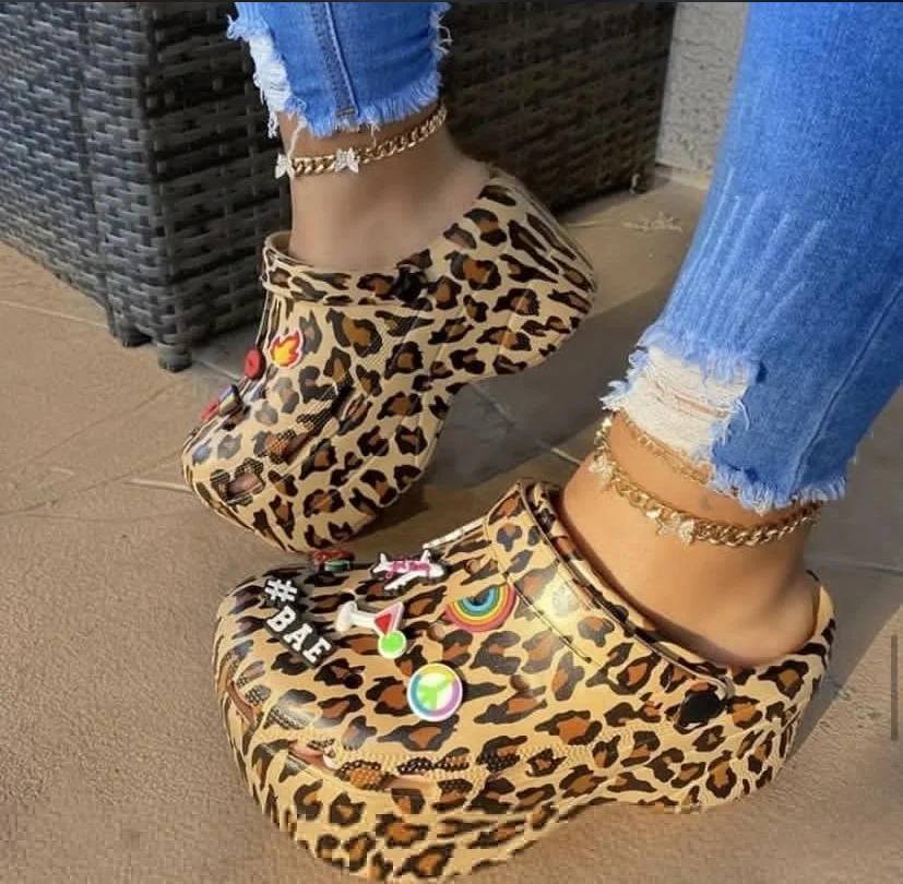 Женские сандалии с леопардовым принтом, босоножки на высоком каблук...