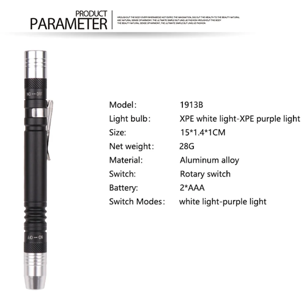 УФ-светильник для ручки мини-светильник для вспышки 95nm Ультрафиолетовый фонарь 2 в 1 Многофункциональный светильник для ручки Портативный Профессиональный светильник для обнаружения
