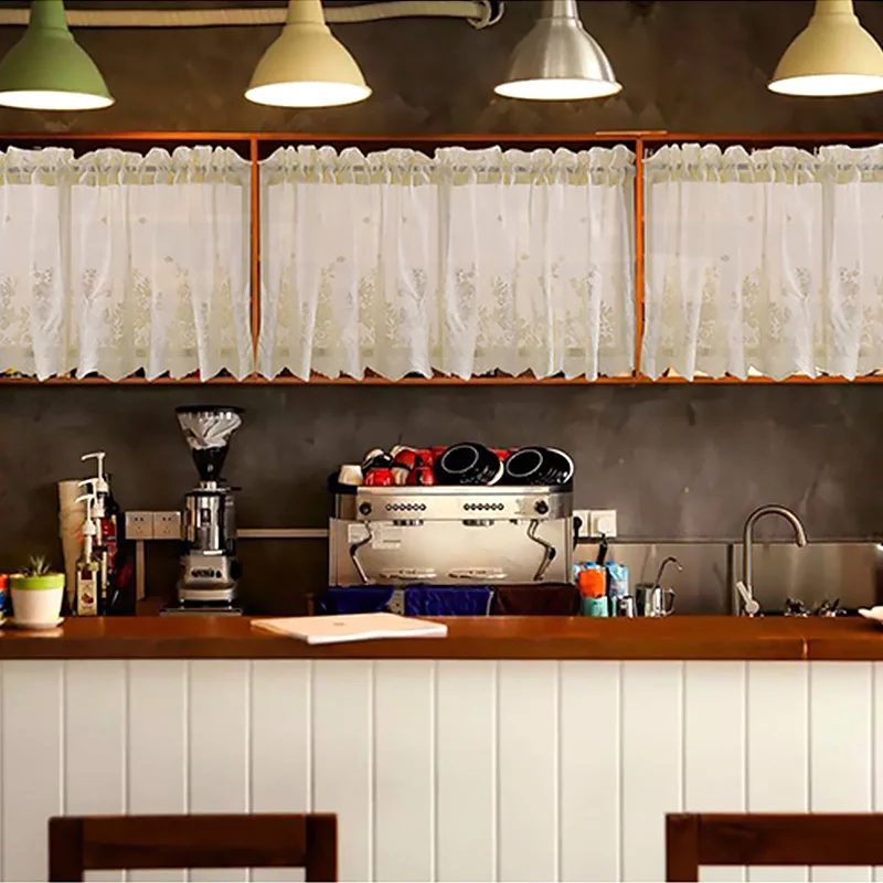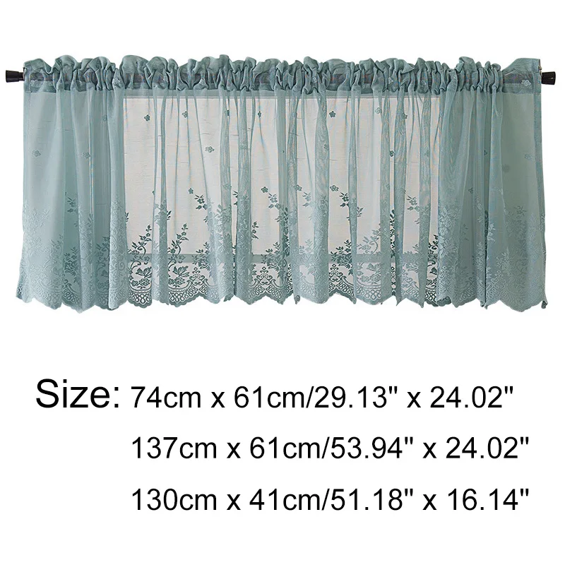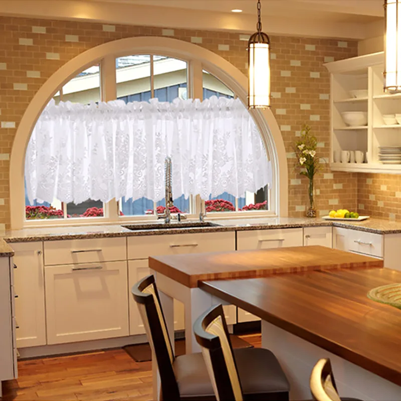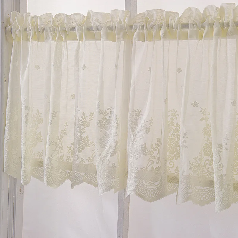 Короткая занавеска с кружевным цветочным узором, элегантная и свежая.