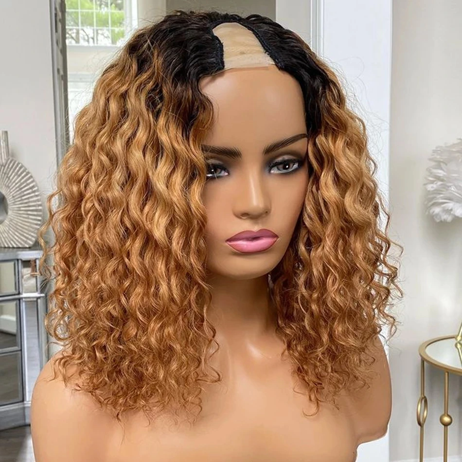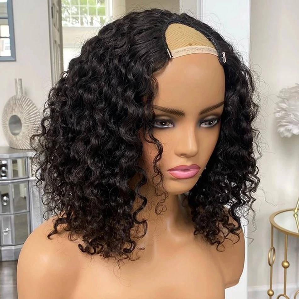 100% натуральные вьющиеся волосы U-образной формы без клея, парики ...