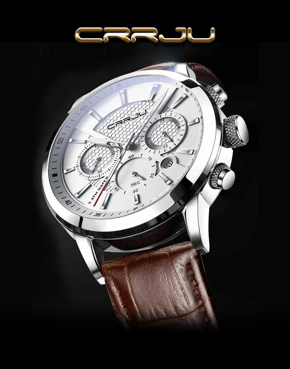 Часы CRRJU Мужские кварцевые с кожаным ремешком, повседневные деловые спортивные водонепроницаемые, с хронографом и датой, 2021