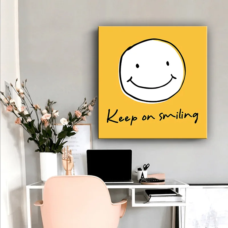 Современный минималистский желтый смайлик Холст Картина мультфильм смайлик для декора стен дома спальни гостиной Висячие фотографии