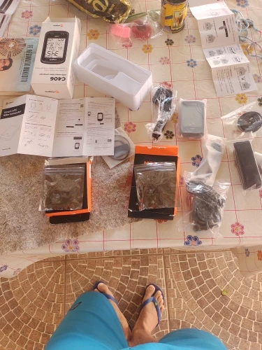 Продавец хорошо упаковал велокомпьютер.Включается,работает,синхронизация с причудой(значок моргает продолжительное время).Пока не тестил.В подарок положили купон на участие в виртуальной гонке на семь дней. Приятно. В датчиках батарейки,которые закрыты специальной плёнкой(защита от разряда).