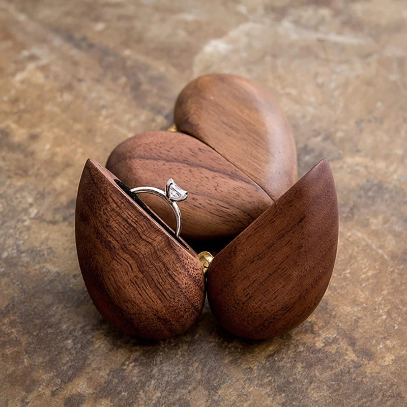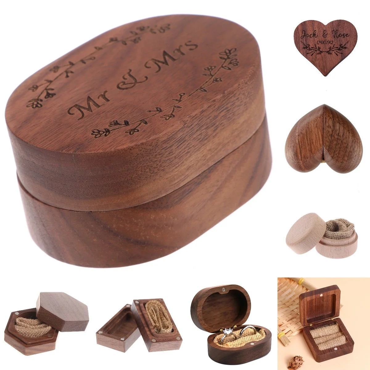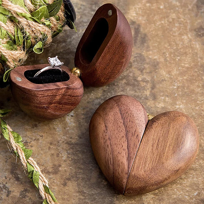 С сердечками, 1 предметквадратный Форма коробка грецкого ореха персонализированные Винтаж Свадебные деревянная коробочка для колец Держатель Путешествия Чехол Портативный ХР