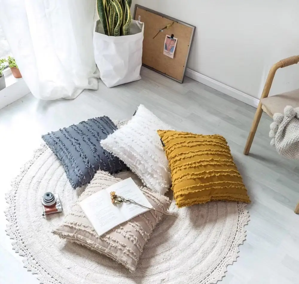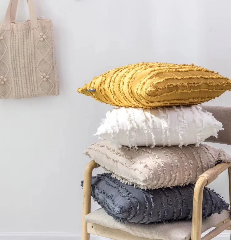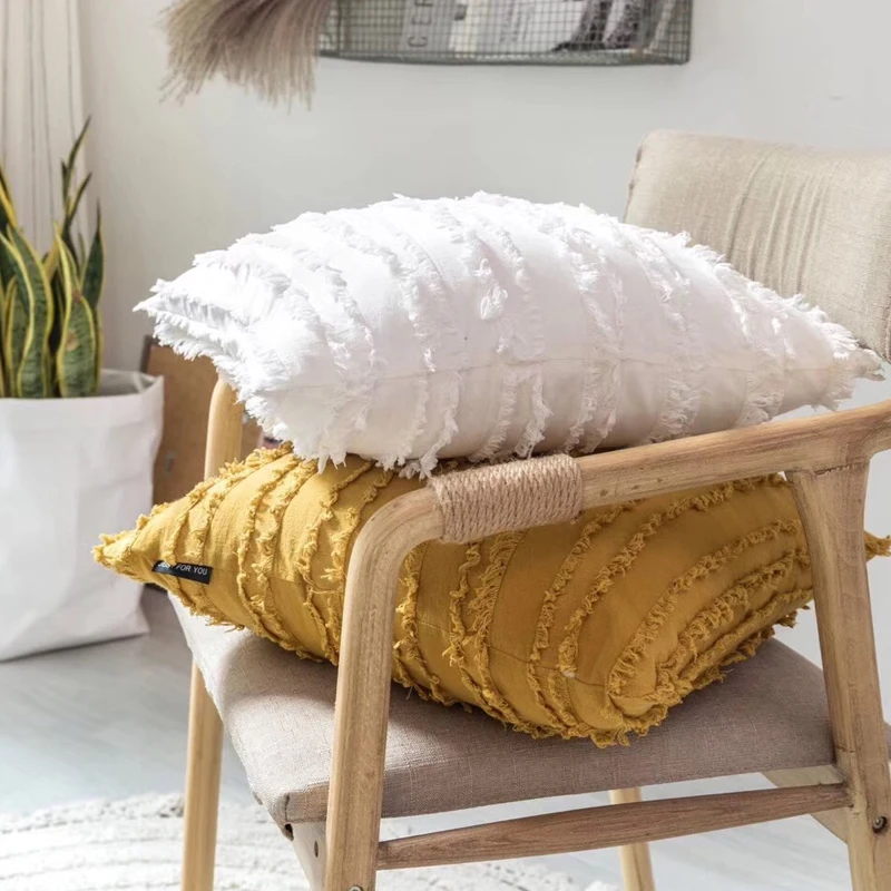 Наволочка с кисточками желтого, бежевого, белого цветов, 50x50 см