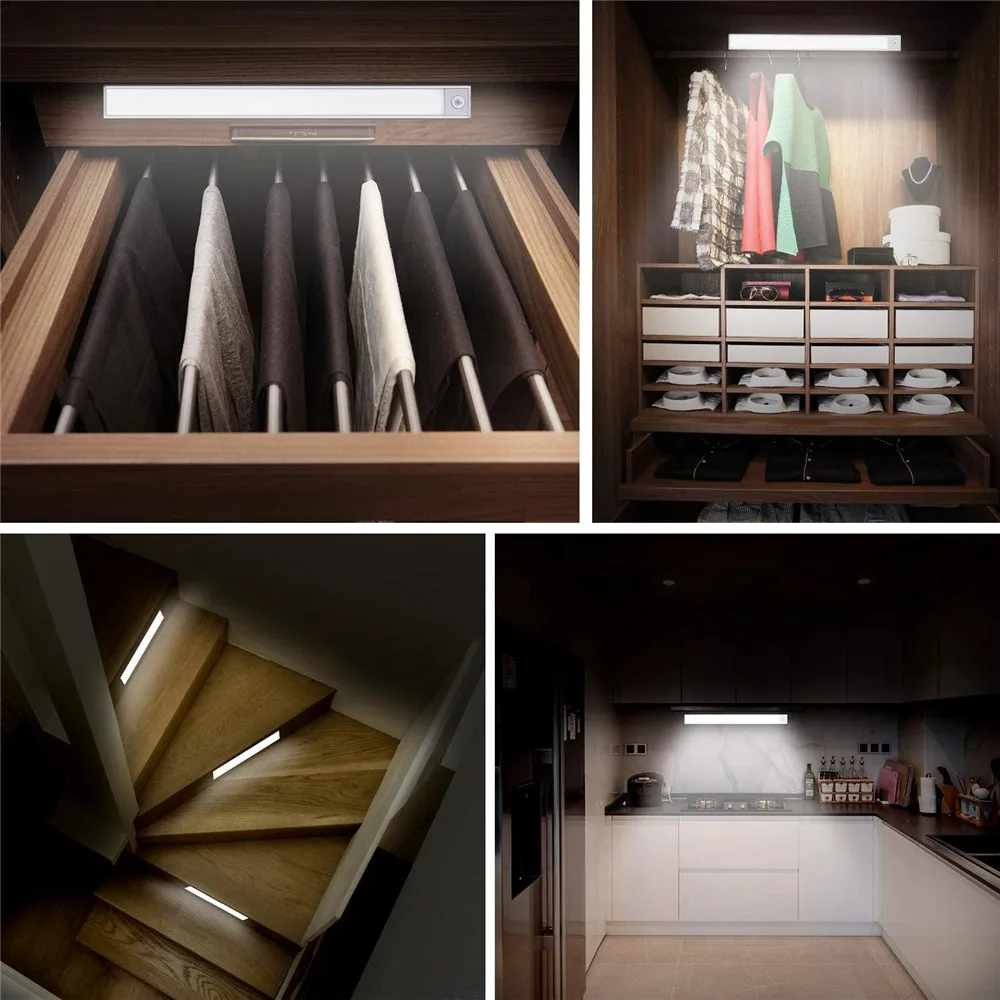 Ультра-тонкий каблук 122340 см светодиодный светильник для шкафа USB Перезаряжаемые под кабинетное освещение беспроводной инфракрасный датчик, который крепится в движения PIR Сенсор шкаф настенный светильник