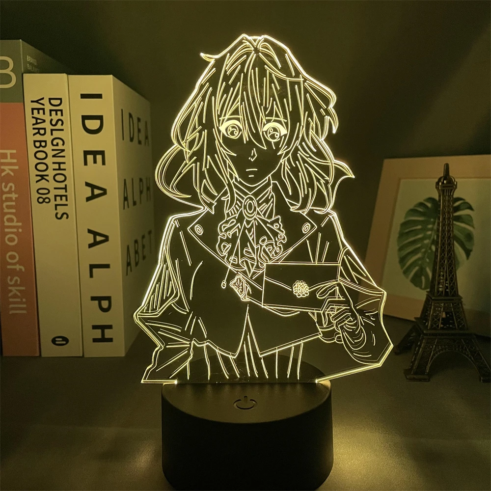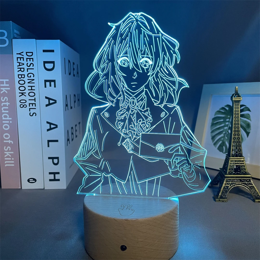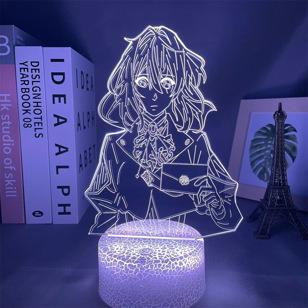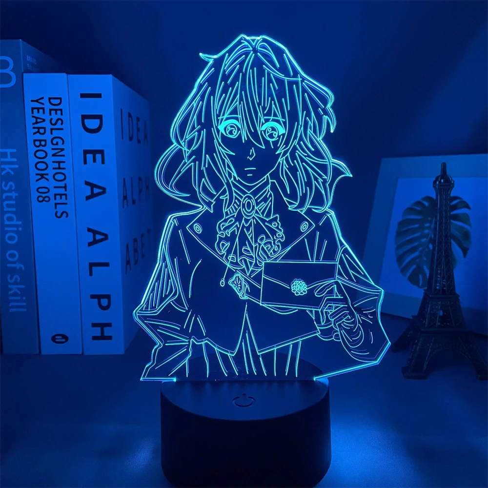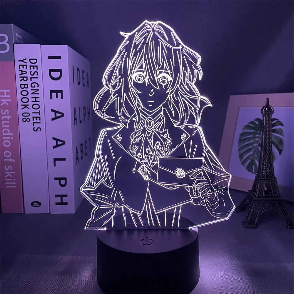 Акриловый светодиодный ночсветильник аниме фиолетовый Evergarden для спальни, декоративный ночсветильник для комнаты, подарок на день рождения, светильник лампа 3d для манги