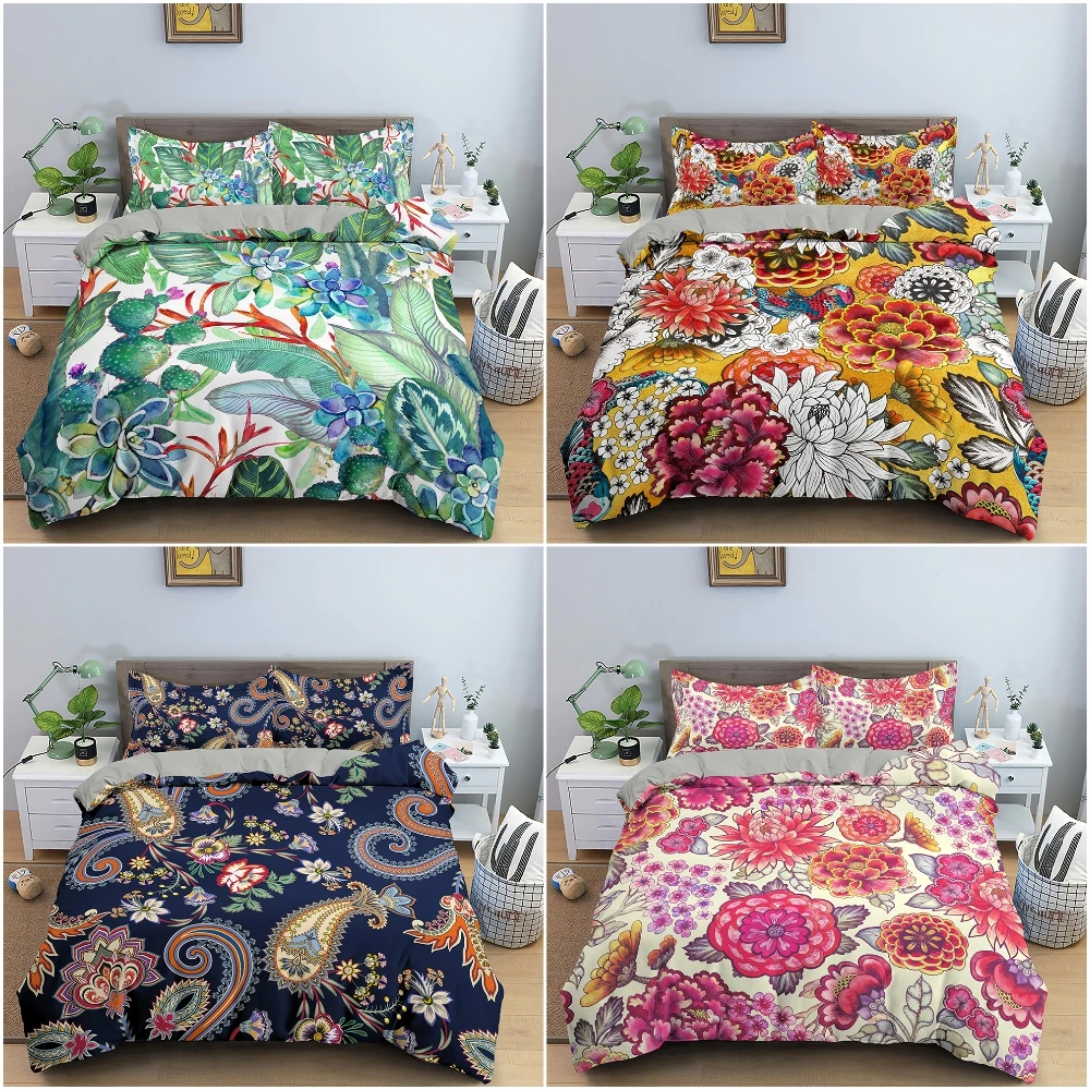 Тропический цветок лист пододеяльник Queen Винтаж цветочный Постельное белье в стиле Бохо Стиль, стеганое одеяло, размеры: комплект для обычной двухстальной шикарная Цветочная Стёганое одеяло крышки