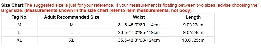 Номер бирки Рекомендуемый размер для взрослых Талия Длина М Средний 31,5-45,0 "/80-114 см 9,0 "/23 см L Большой 33,5-47,0 "/85-119 см 9,0 "/24 см XL X-Large 35,5-48,0 "/90-124 см 10,0 "/25 см XXL XX-большой 37,0-51,0 "/95-129 см 10,0 "/26 см