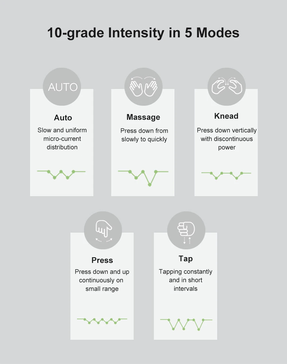10-класс интенсивности в 5 режимами предназначен для того, чтобы удовлетворить вашим различным массаж требования