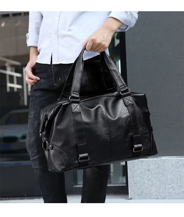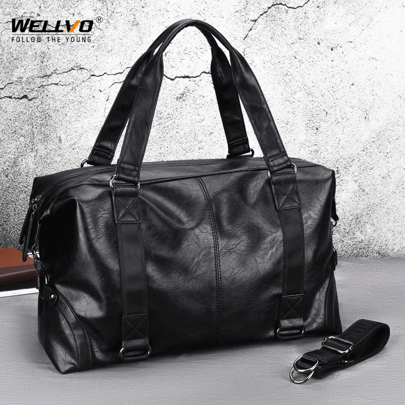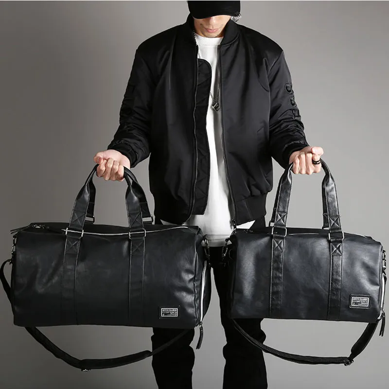 Дорожная Спортивная сумка для мужчин, черная водонепроницаемая сумка из искусственной кожи, саквояж на плечо для мужчин, вместительный дизайнерский мешок для выходных, X67C