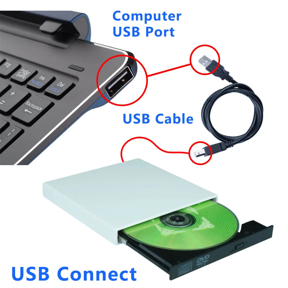 Внешний привод для автомобиля Slim USB 2,0, DVD CD-ROM, поддержка д...