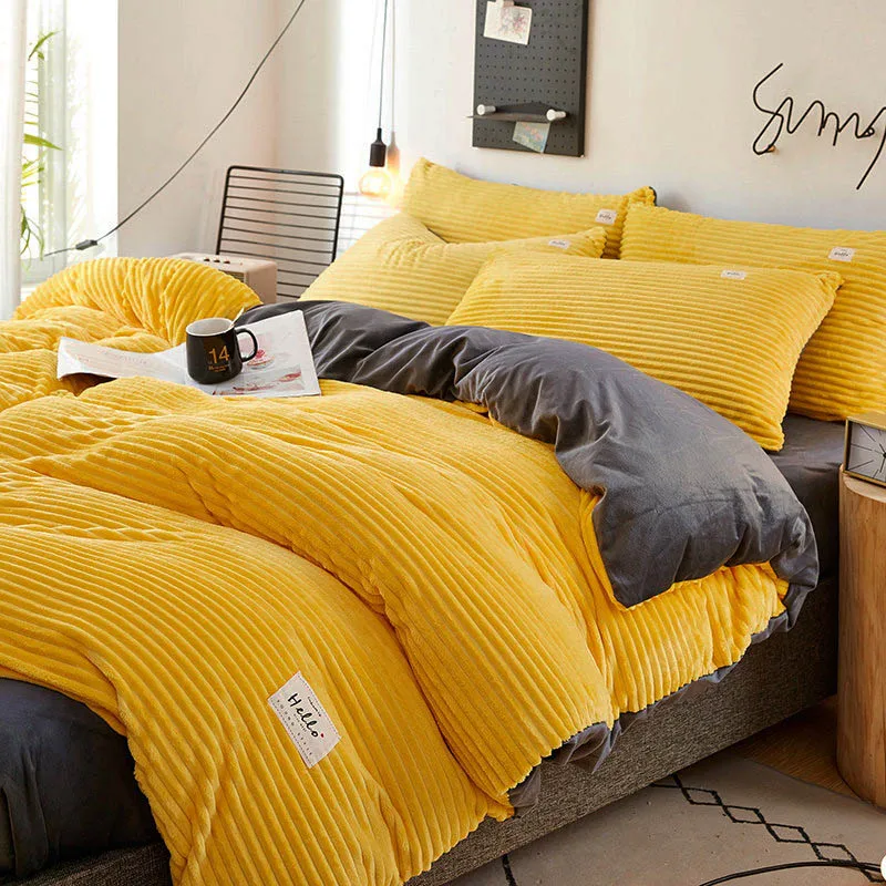 Коралловые бархатное лоскутное одеяло крышка утолщенная пододеяльники сплошной Цвет Постельное белье Утепленная одежда Одеяло для кровати мягкие постельное белье Nordic с Три-дэ принтом