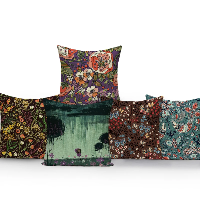 Наволочки в стиле ретро с цветочным принтом, наволочки с цветами и растениями, скандинавский чехол для подушек, домашний декор, наволочки для диванных подушек на заказ