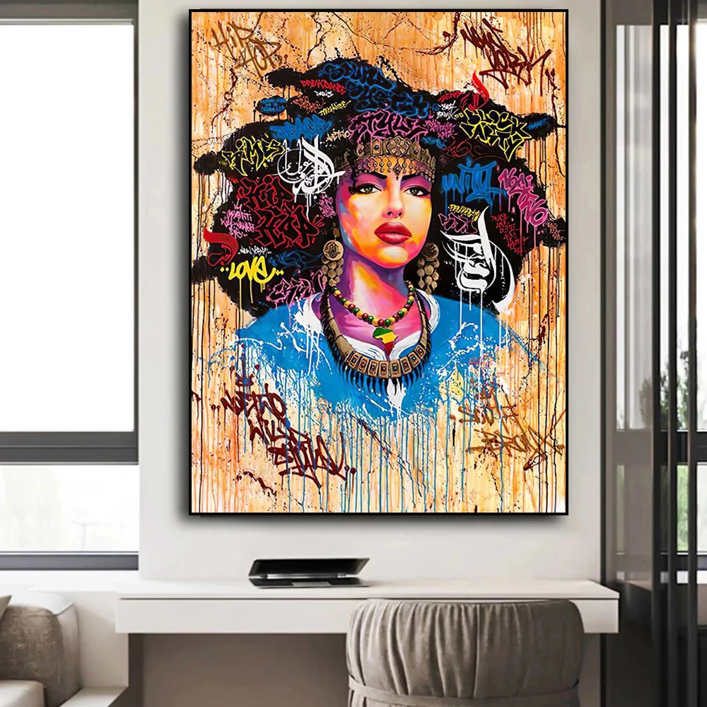 Пушистые волосы, африканская девушка, холст, картина, граффити, искусство, холст, художественные плакаты, принты, настенные картины для гостиной, домашний декор