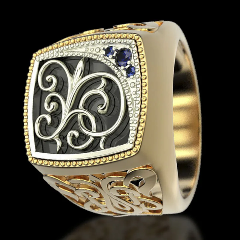 Уникальное мужское кольцо, Винтажное кольцо с гравировкой, мужское ...