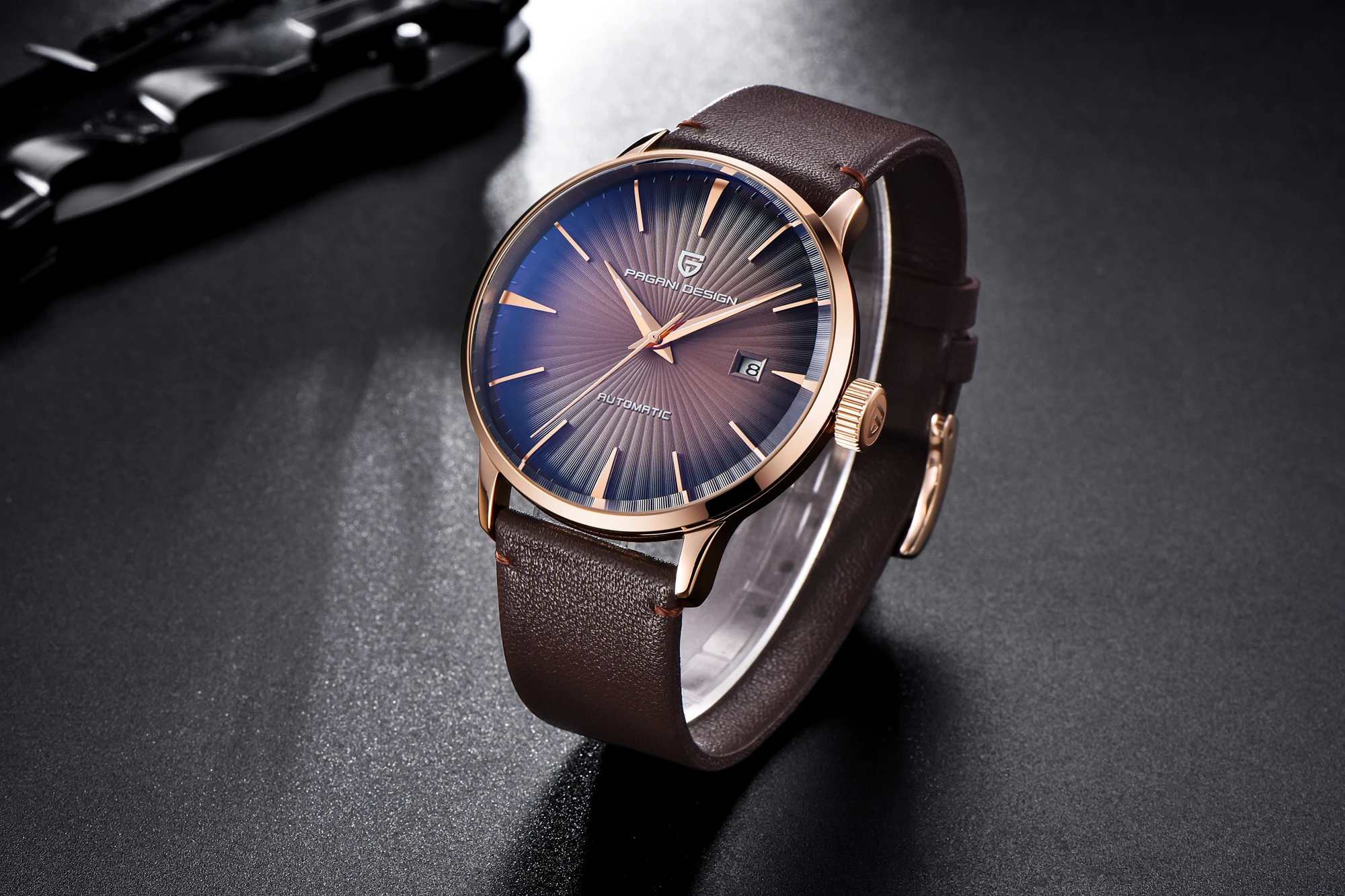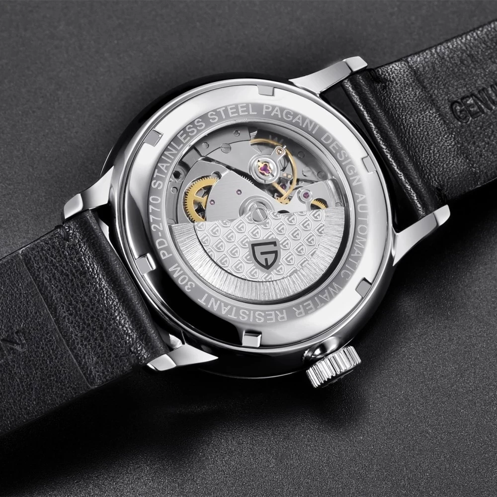 Часы наручные PAGANI Мужские механические, роскошные брендовые автоматические модные водонепроницаемые с кожаным ремешком