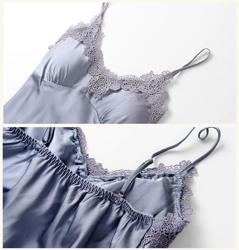 Женская атласная пижама, кружевное нижнее белье с V-образным вырезо...