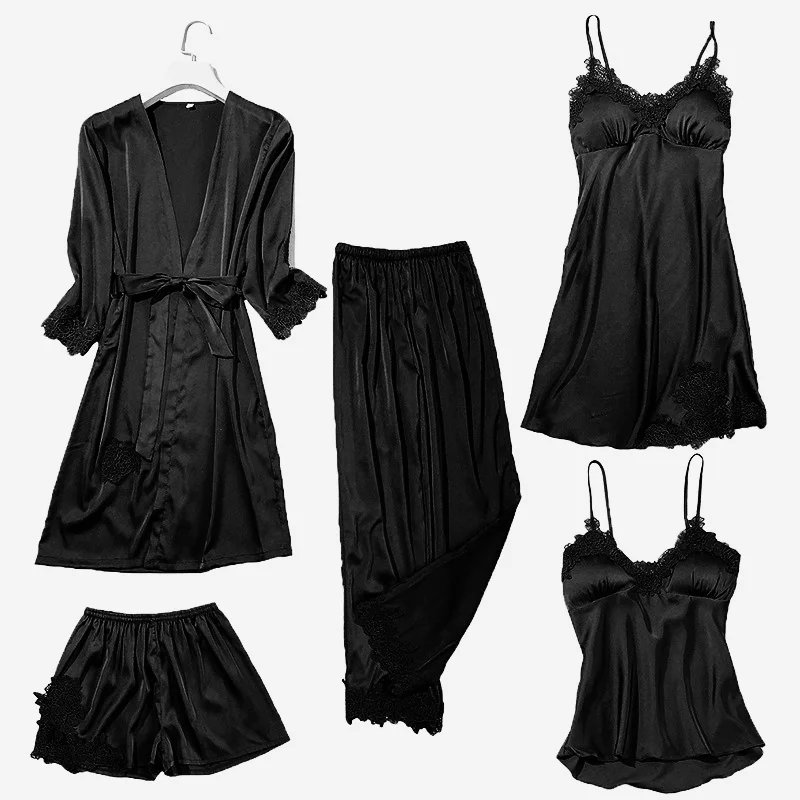 Пижамный комплект Женский атласный кружевной из 5 предметов