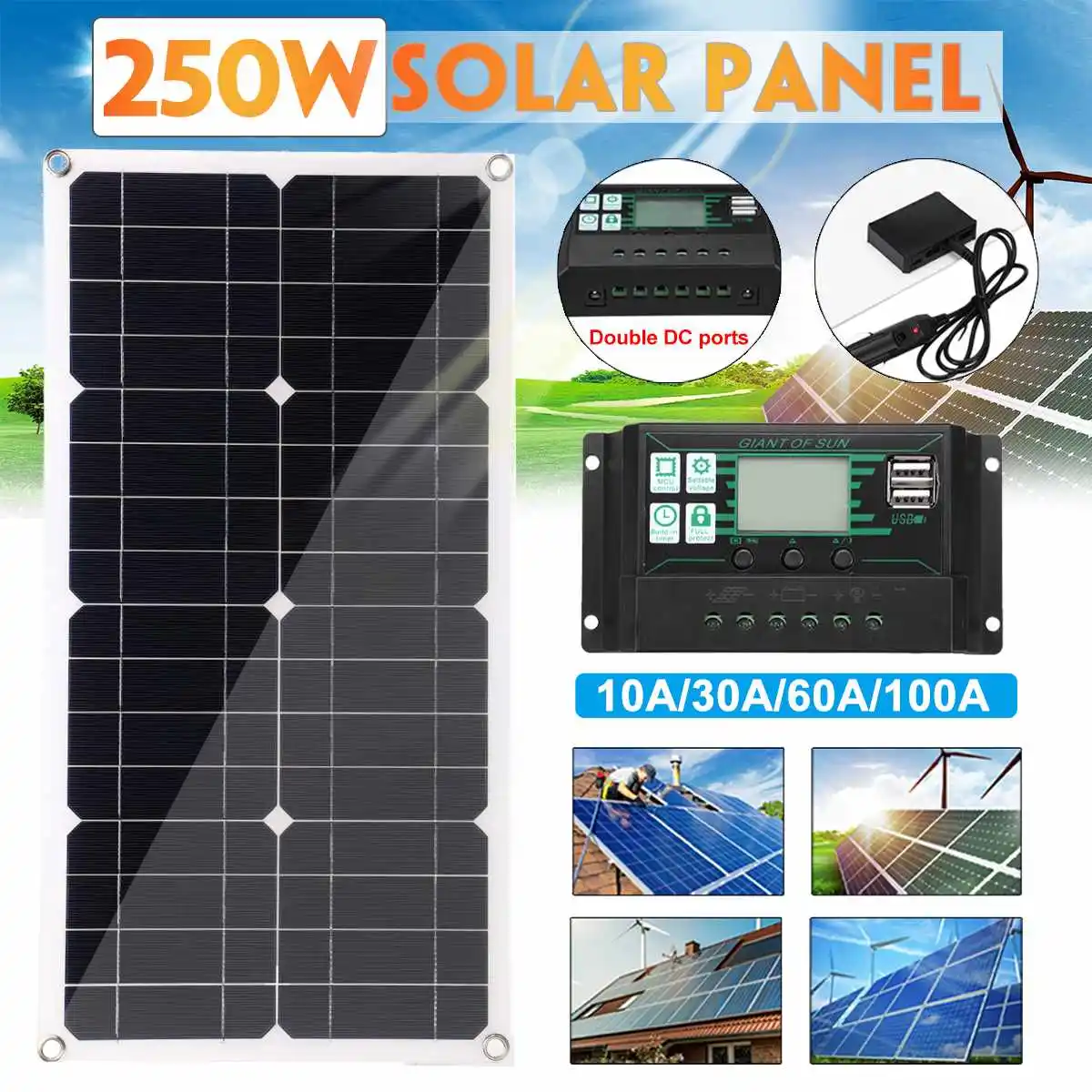 250W Панели солнечные комплект полный 18V125V DC usb-камера с флеш-картой памяти 103060100A блок управления установкой на солнечной батарее солнечных батарей для автомобилей яхты на колесах Батарея Зарядное устройство