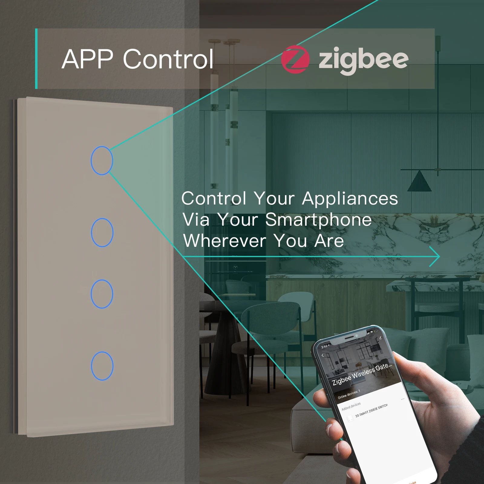Сенсорный светильник ель света BSEED Zigbee, 4 клавиши, 157 мм, со стеклянной панелью