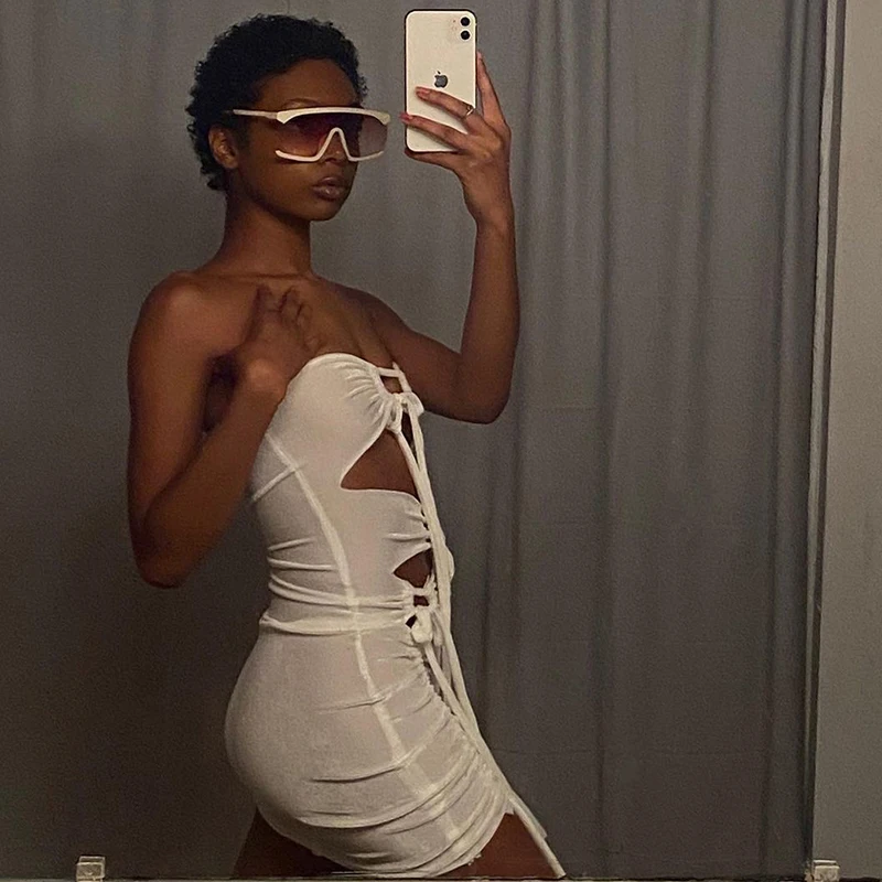 Женское летнее платье с запахом и вырезами, белое вечернее Клубное платье, облегающее, для вечеринок, 2021