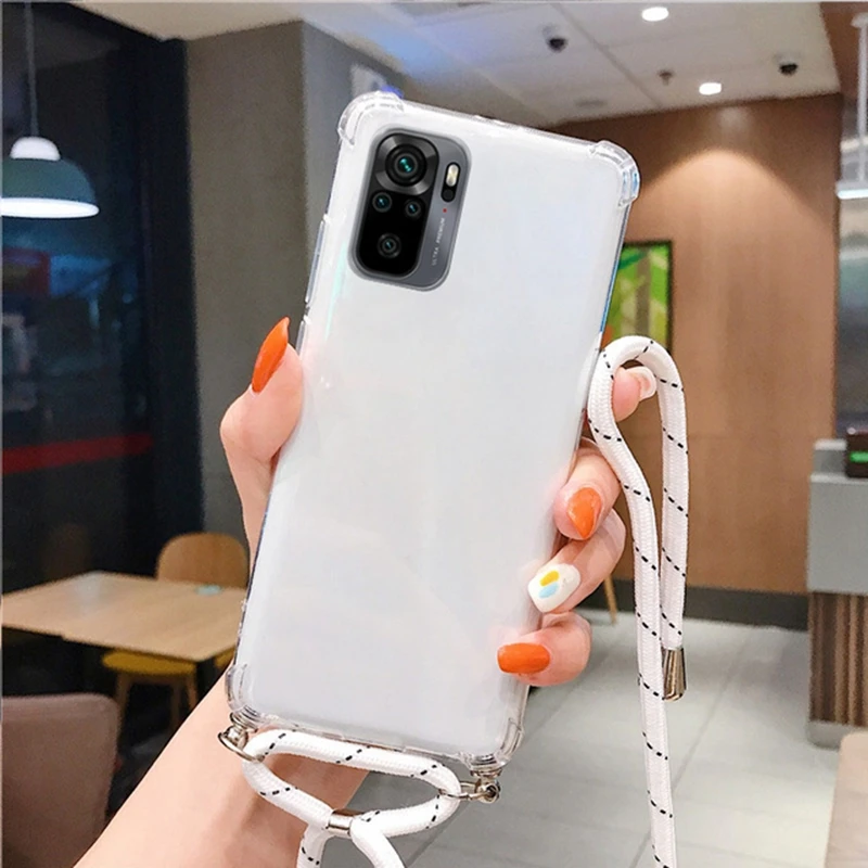 Чехол на ремешке для телефона Xiaomi Redmi Note 9 10 Pro Max, прозрачный мягкий чехол для телефона с веревкой для Xiaomi Poco X3 NFC Pro F3, чехол