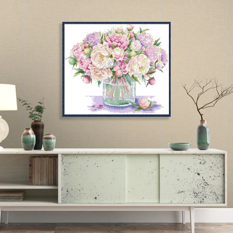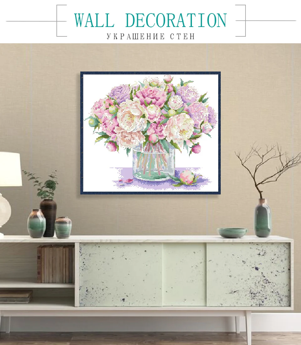 Элегантные наборы для вышивки крестиком с пионами, наборы для вышив...