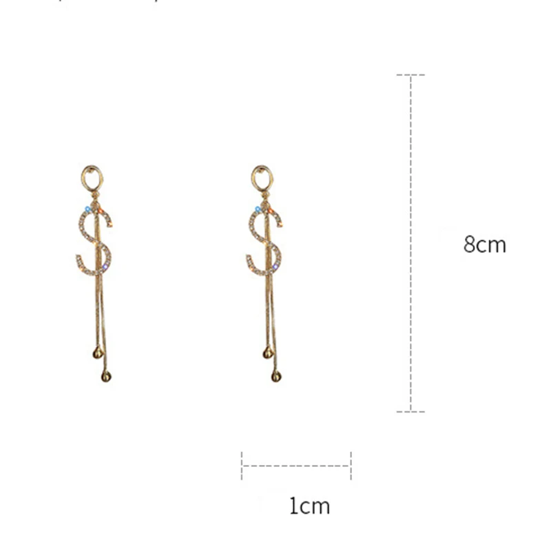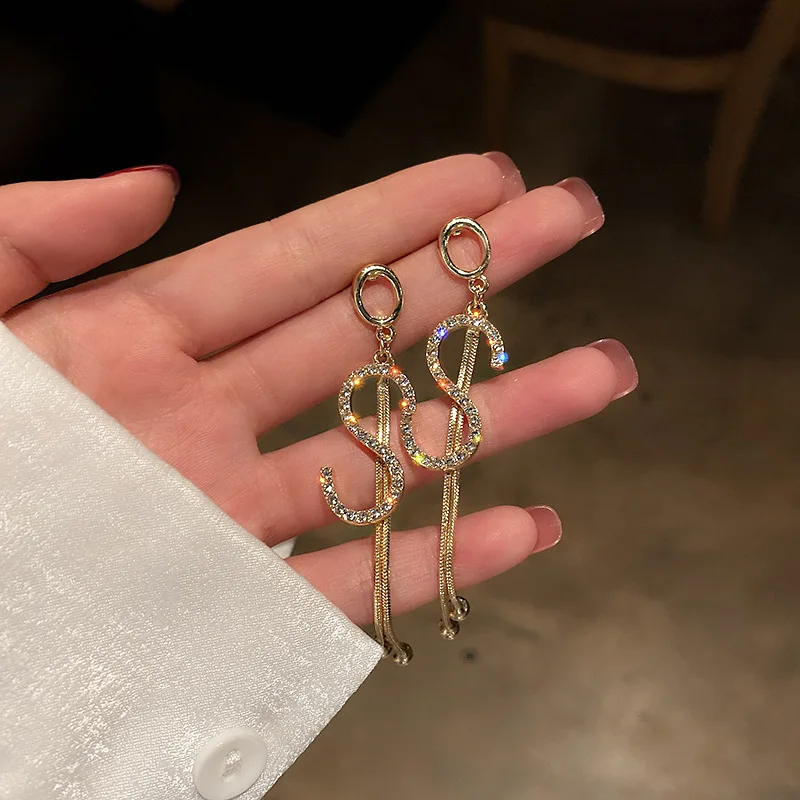 Роскошные серьги-гвоздики с буквой S, с кисточками, с имитацией жем...