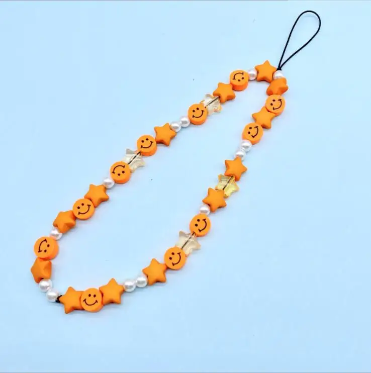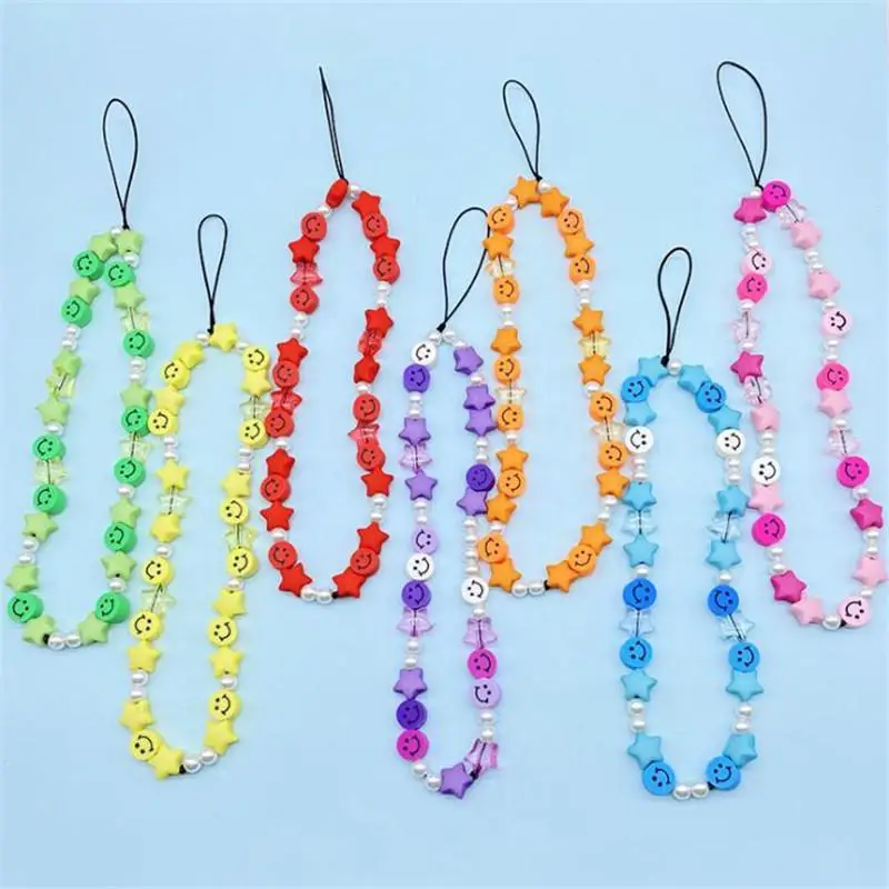 Новинка, милые красочные аксессуары для телефона, смайлики из бисера, браслеты из мягкой керамики, подвески с кисточками для женщин, браслет, Подарочная цепочка для телефона