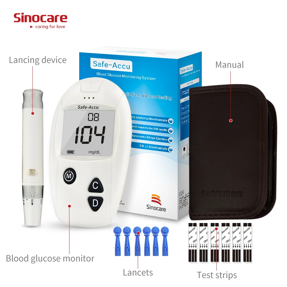 Глюкометр Sinocare Safe-Accu с 10 бесплатными тест-полосками и ланцетами