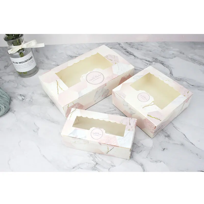 20 шт. розовая мраморная Подарочная коробка из крафт-бумаги с окошк...