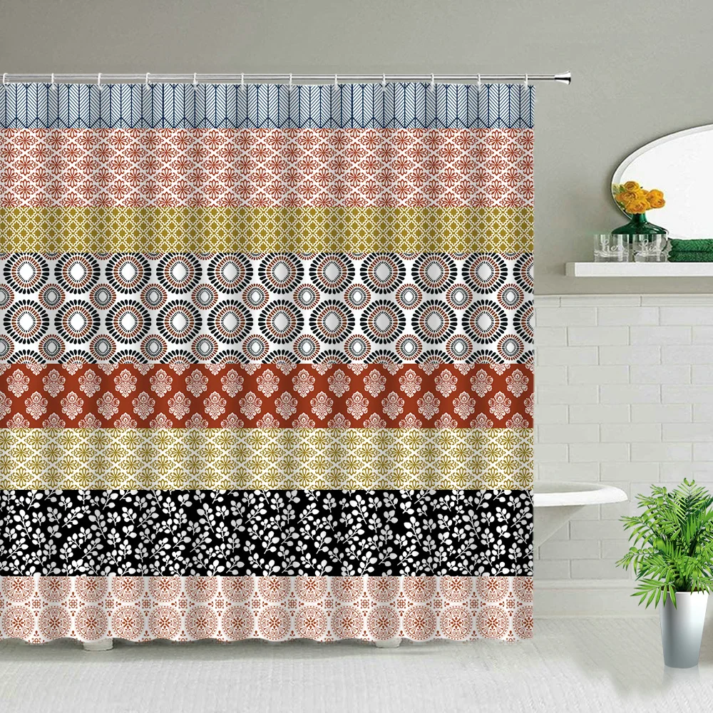 Занавеска для душа, водонепроницаемая, с черно-белыми полосками, с принтом, в марокканском богемном стиле, с цветами мандалы, с геометрическим рисунком, занавеска с крючками для ванной комнаты, с крючками