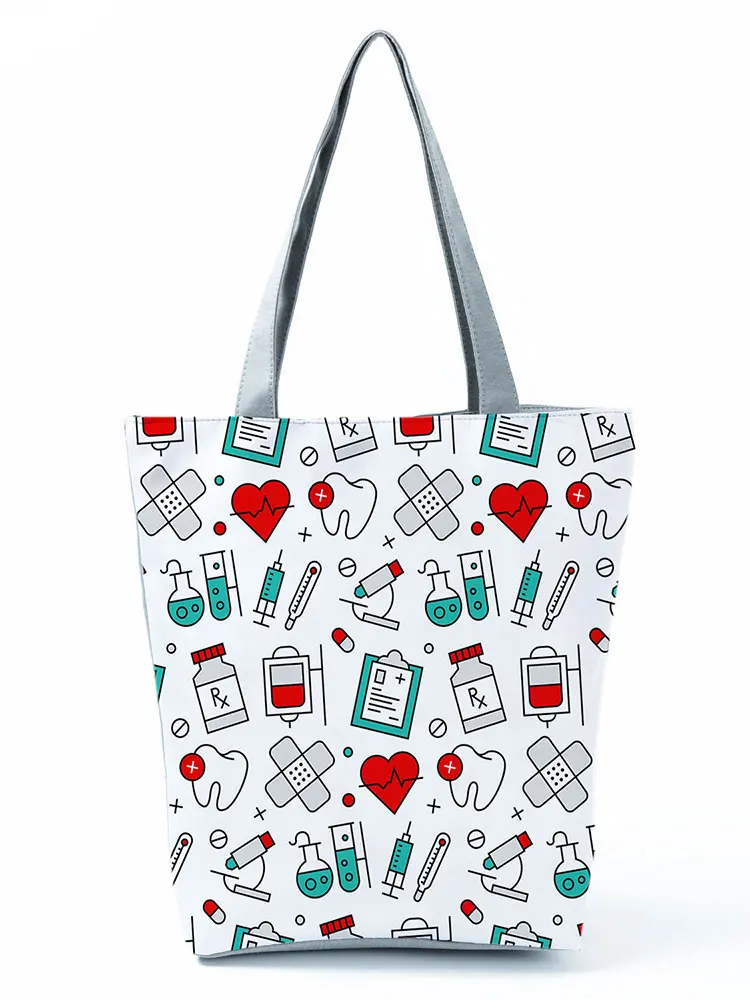 Сумка с мультяшным принтом медсестры, вместительная Эко-многоразовая сумка для покупок, складная сумка-тоут с электрокардиограммой, модная женская сумка через плечо