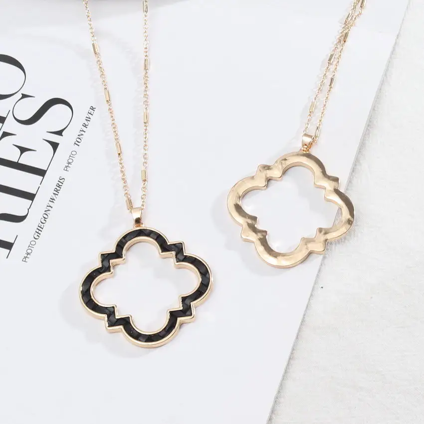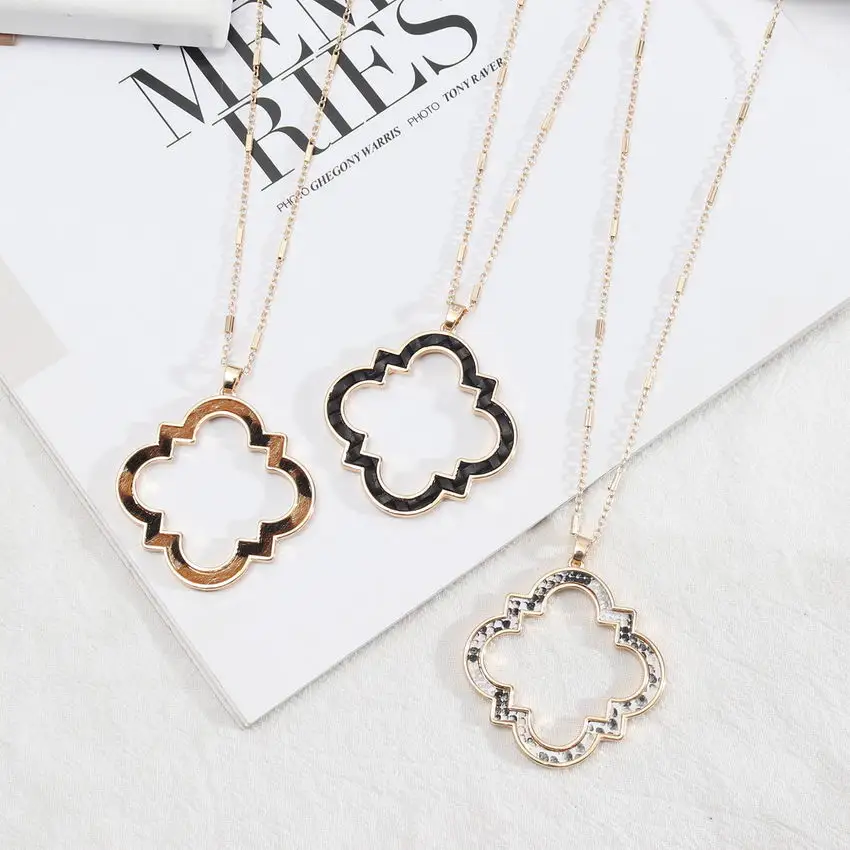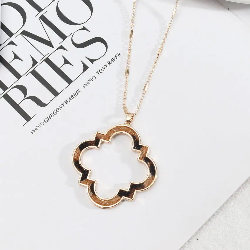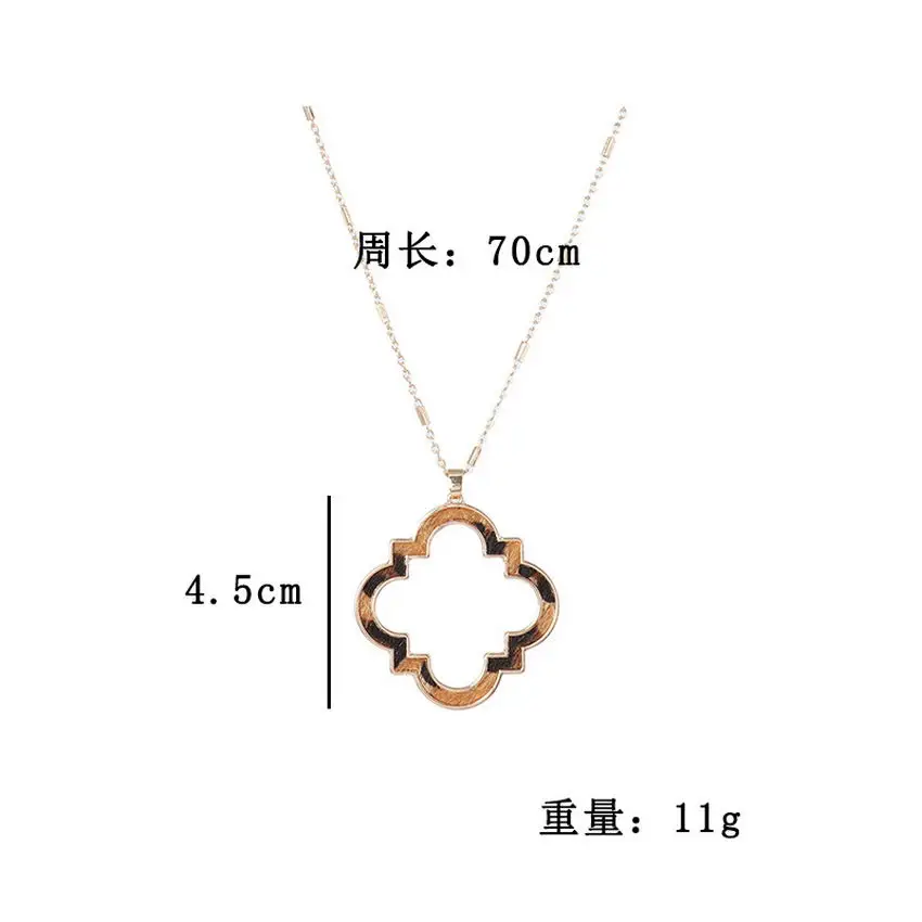 Искусственная кожа Леопард змеиная мозаика открытый Quatrefoil ожерелье для женщин 2021 Трендовое классическое длинное ожерелье с вырезом клевер ювелирные изделия