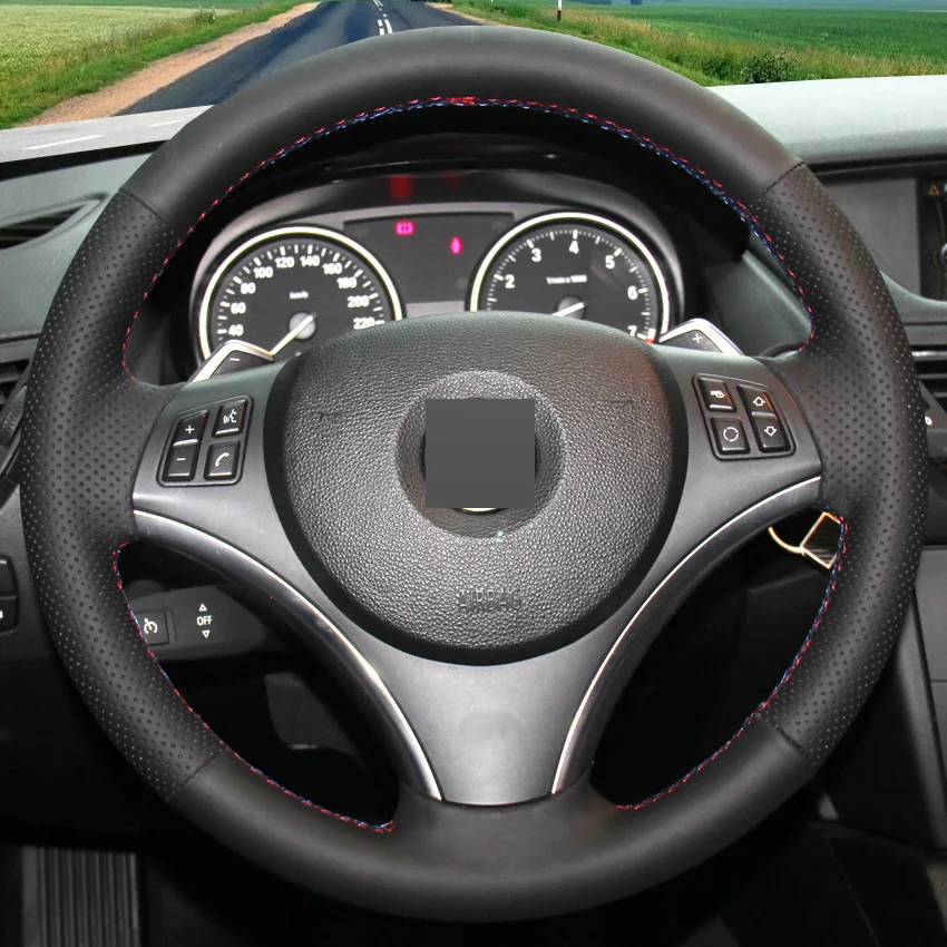 HandSewing черного цвета из натуральной кожи Нескользящая чехол рулевого колеса автомобиля для BMW E90 (седан) E91 (универсал) E92 E93 X1 E84 E87 E81 E82 E88