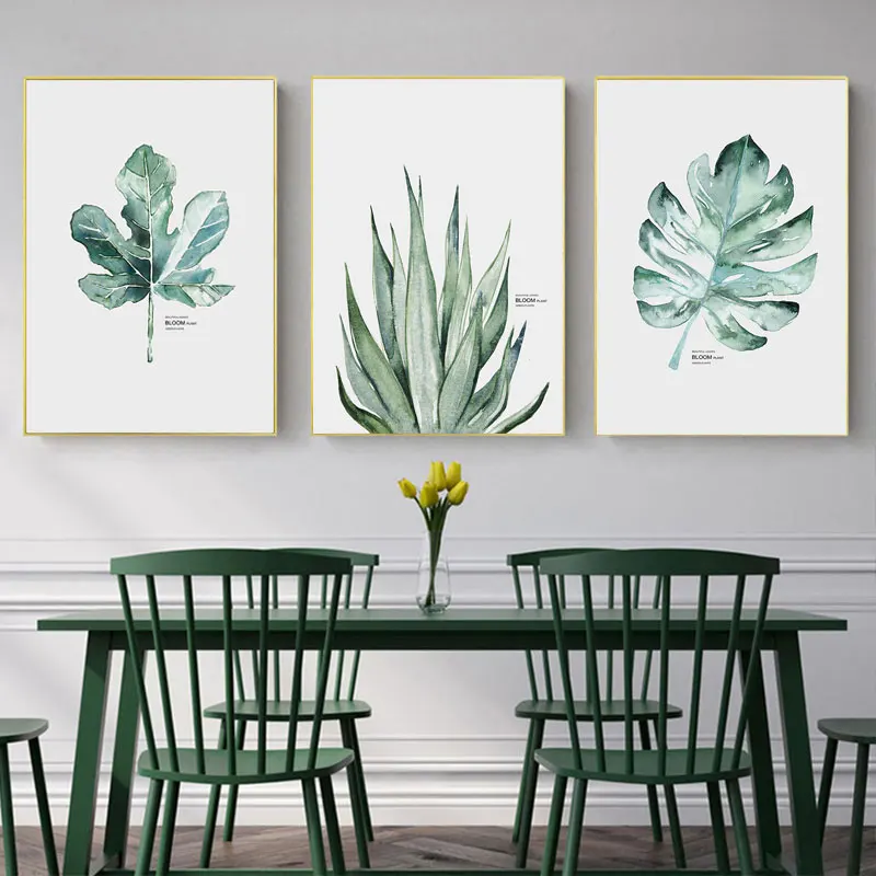 Простые настенные художественные плакаты с зелеными растениями, тропические листья, Картина на холсте, декоративные картины для гостиной, домашний декор