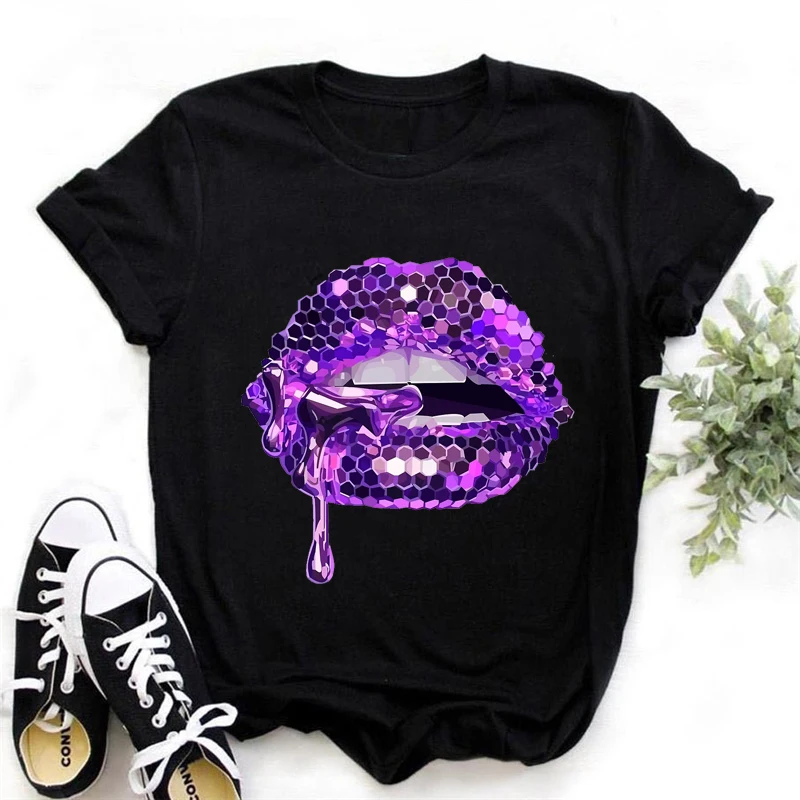 Футболка женская с принтом в виде губ, с золотыми блестками, ЛГБТ, ...
