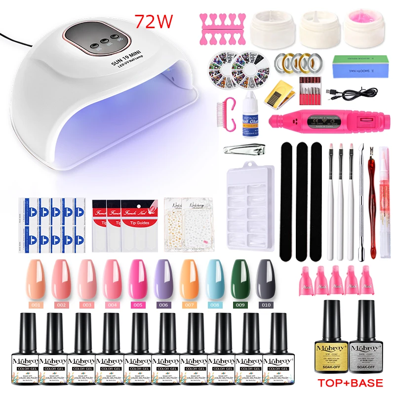 Набор для маникюра 72 Вт с УФсветодиодной лампой и кистью, набор для французского маникюра, инструменты для украшения ногтей, набор для маникюра