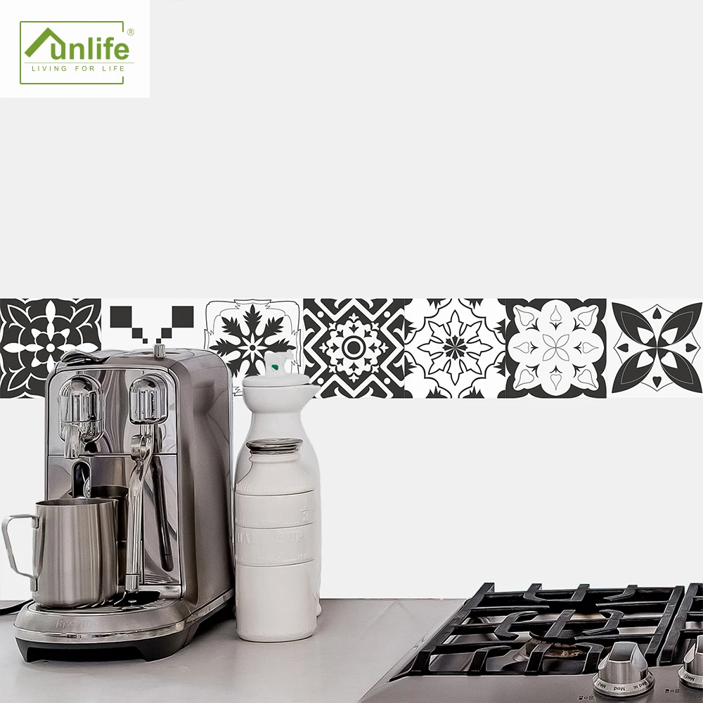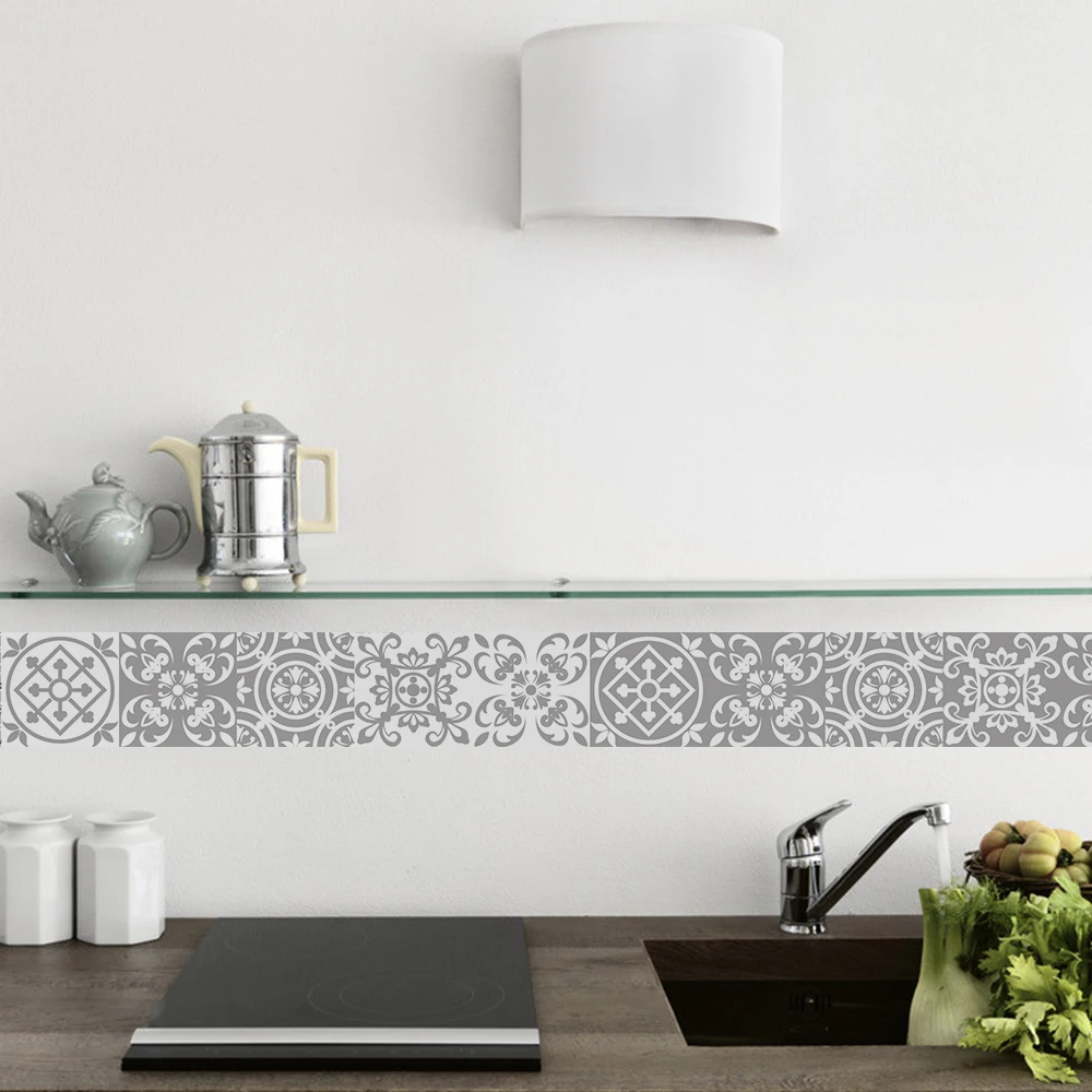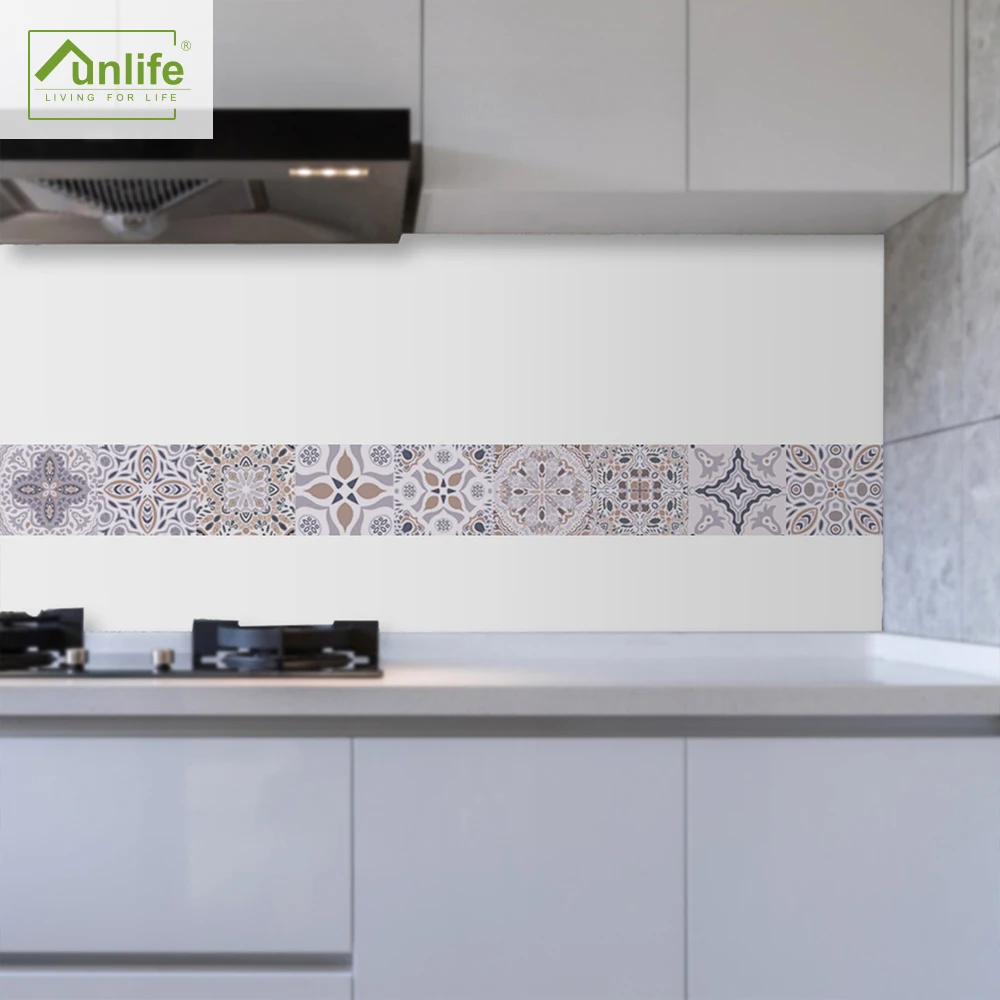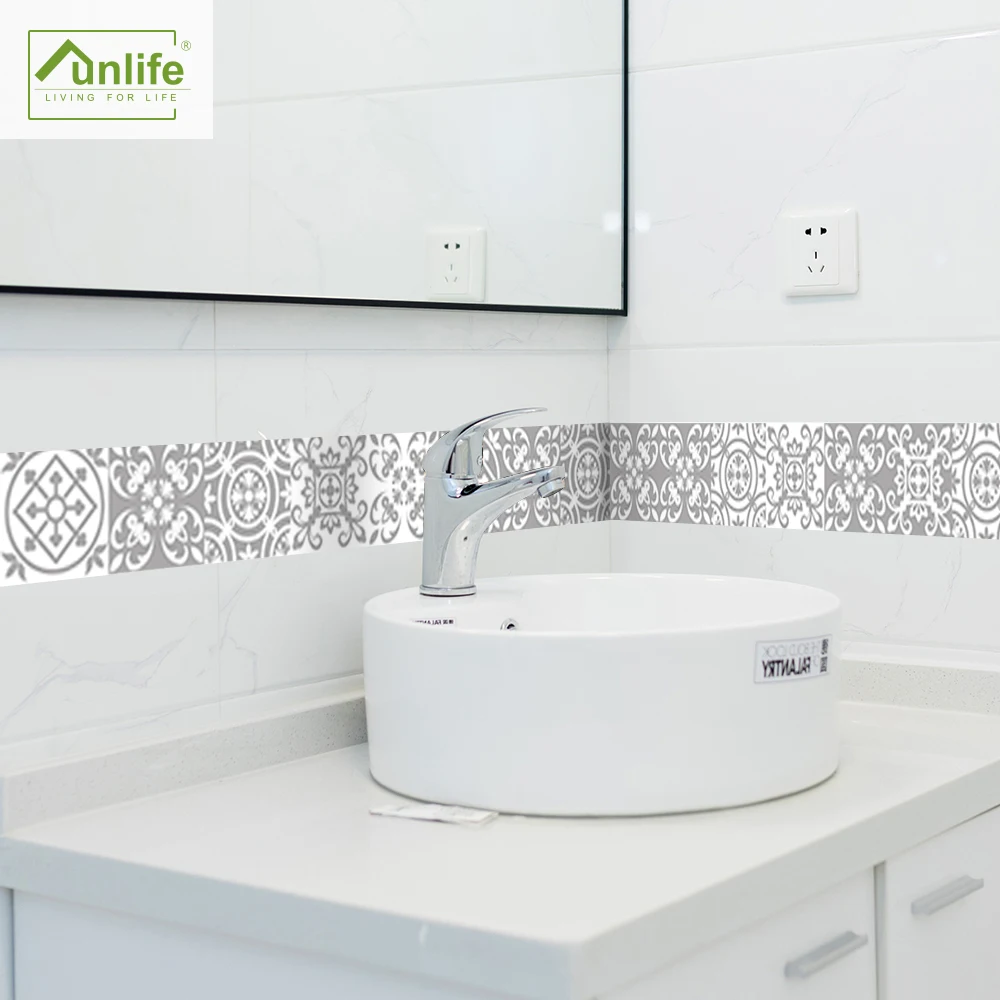 FunlifeСерая Марокканская Наклейка на стену в стиле ретро, водостойкая Наклейка на стену, самоклеящаяся кухонная масляная мебель для ванной комнаты