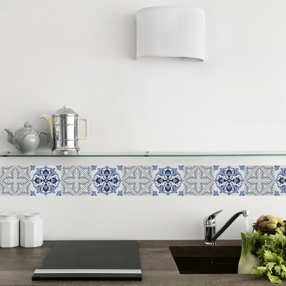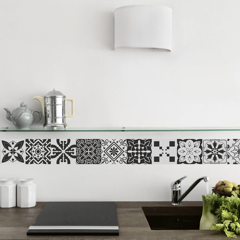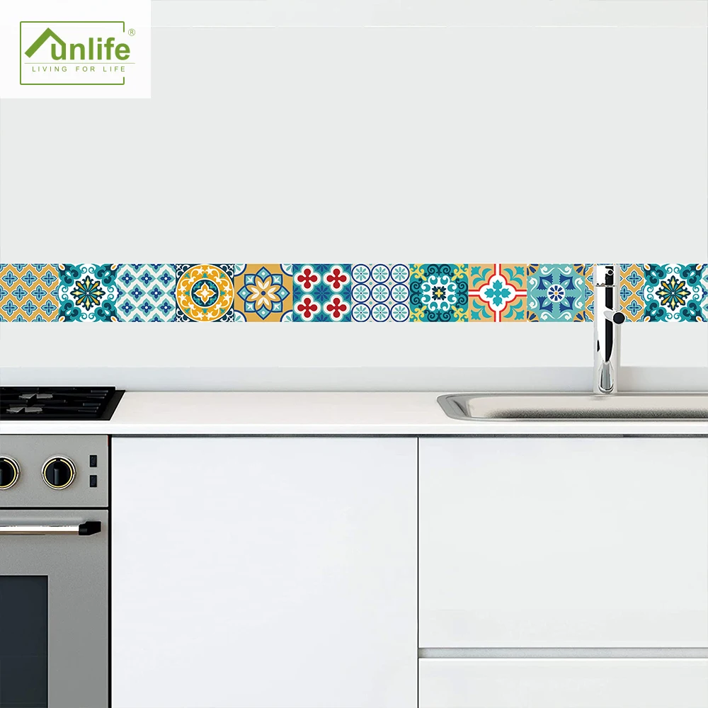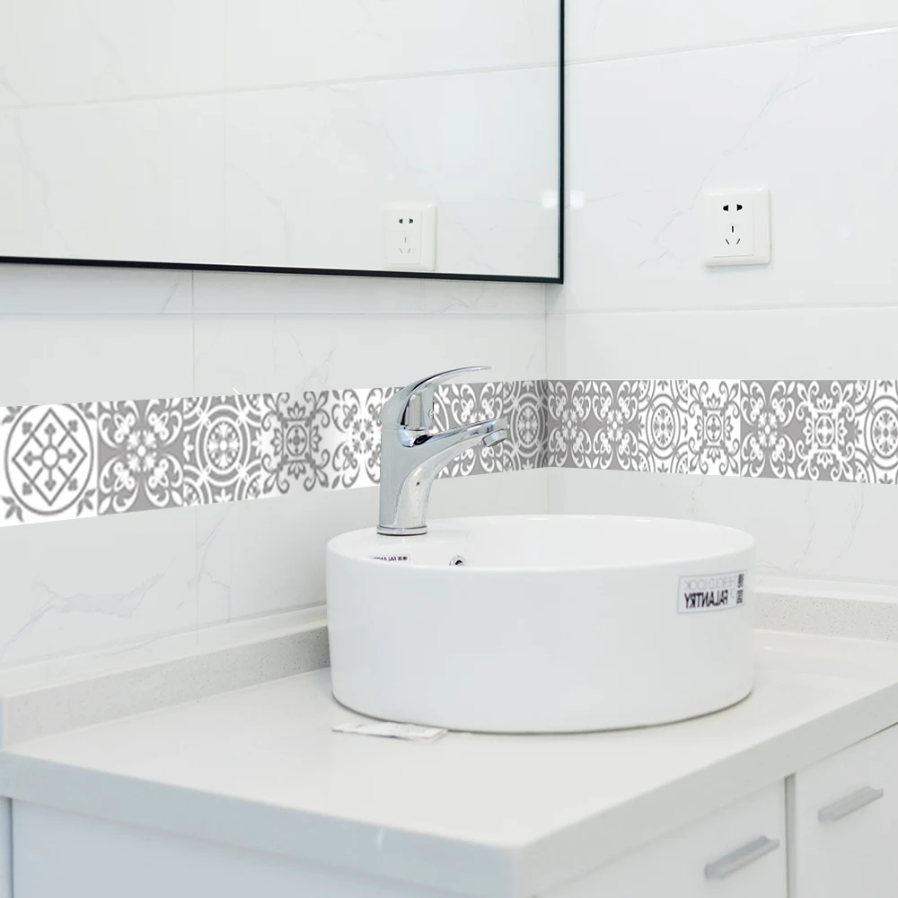 FunlifeСерая Марокканская Наклейка на стену в стиле ретро, водостойкая Наклейка на стену, самоклеящаяся кухонная масляная мебель для ванной комнаты