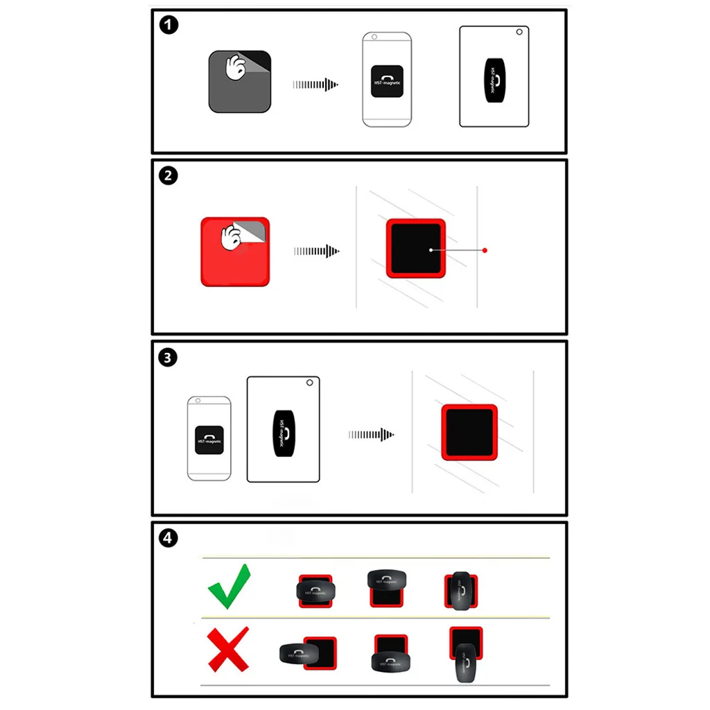 Инструкции: (все установки должны быть очищены салфетками)1. Магнитная карта притягивания:Оторвите клейкую пленку и вставьте в середине задней панели телефона/планшета.2. Магнитные наклейки:Оторвите клейкую пленку. (Пожалуйста, убедитесь, что задняя часть поверхности прозрачная защитная пленка.)3. Используйте Профессиональный канал